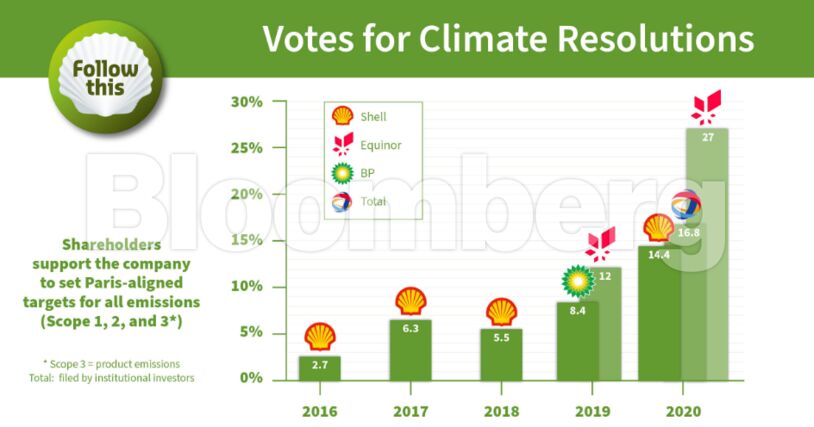 Support among investors remains mixed. In the Netherlands, resolutions tabled by Follow This — which was founded by Dutch campaigner Mark van Baal — have been backed by several large players such as NN Investments and Aegon NV. Yet advocates among the biggest U.S. investors are harder to come by. BlackRock Inc., for example, has always voted against the group’s proposals.
